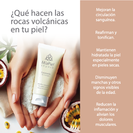 Nuestra esencia se basa en una combinación poderosa: rocas volcáni- cas y semillas naturales, una fusión poderosa que limpia, renueva y protege sin necesidad de enjuague. Las rocas volcánicas, ricas en minerales y con una textura naturalmente porosa, exfolian suavemen- te, eliminando impurezas y activando la regeneración celular. Son fragmentos de tierra viva, traídos del corazón del fuego para despertar tu piel con energía y suavidad.